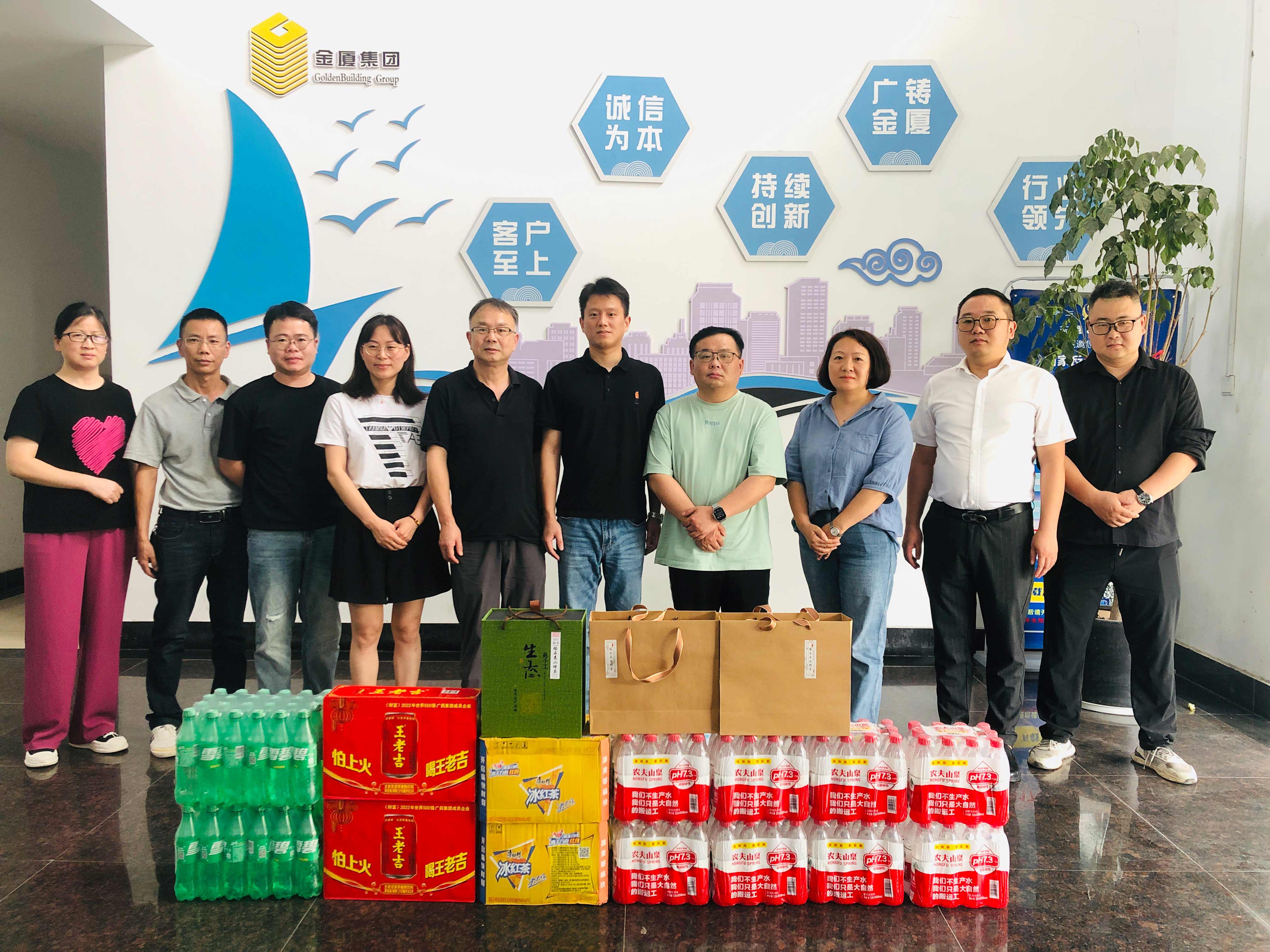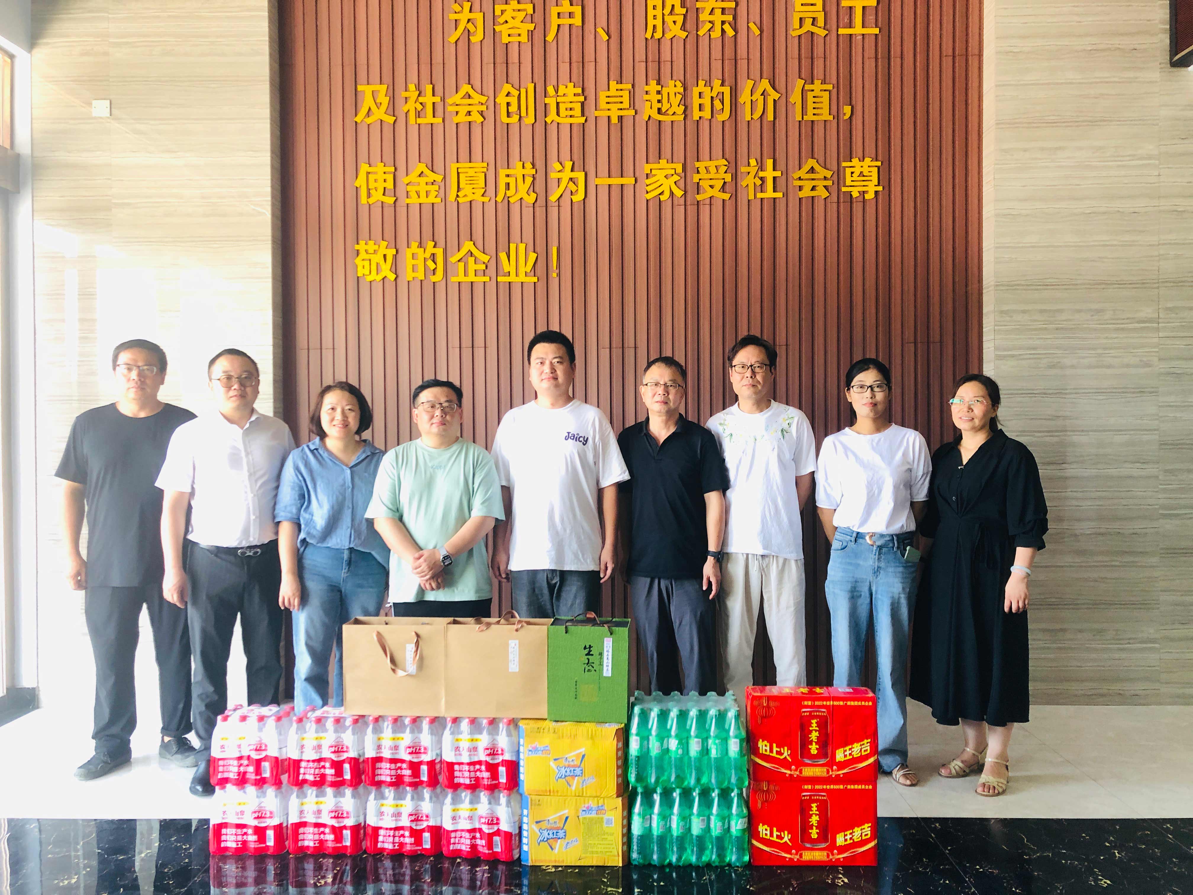 為切實保障一線員工的身體健康,將集團(tuán)“以人為本”的理念落到實處,持續(xù)推進(jìn)“幸福金廈”建設(shè),提升員工的凝聚力和向心力,7月10日,金廈集團(tuán)總裁傅融率集團(tuán)管理層走訪慰問高溫下堅守崗位、辛勤勞動的一線員工,為他們送去清涼和關(guān)懷。