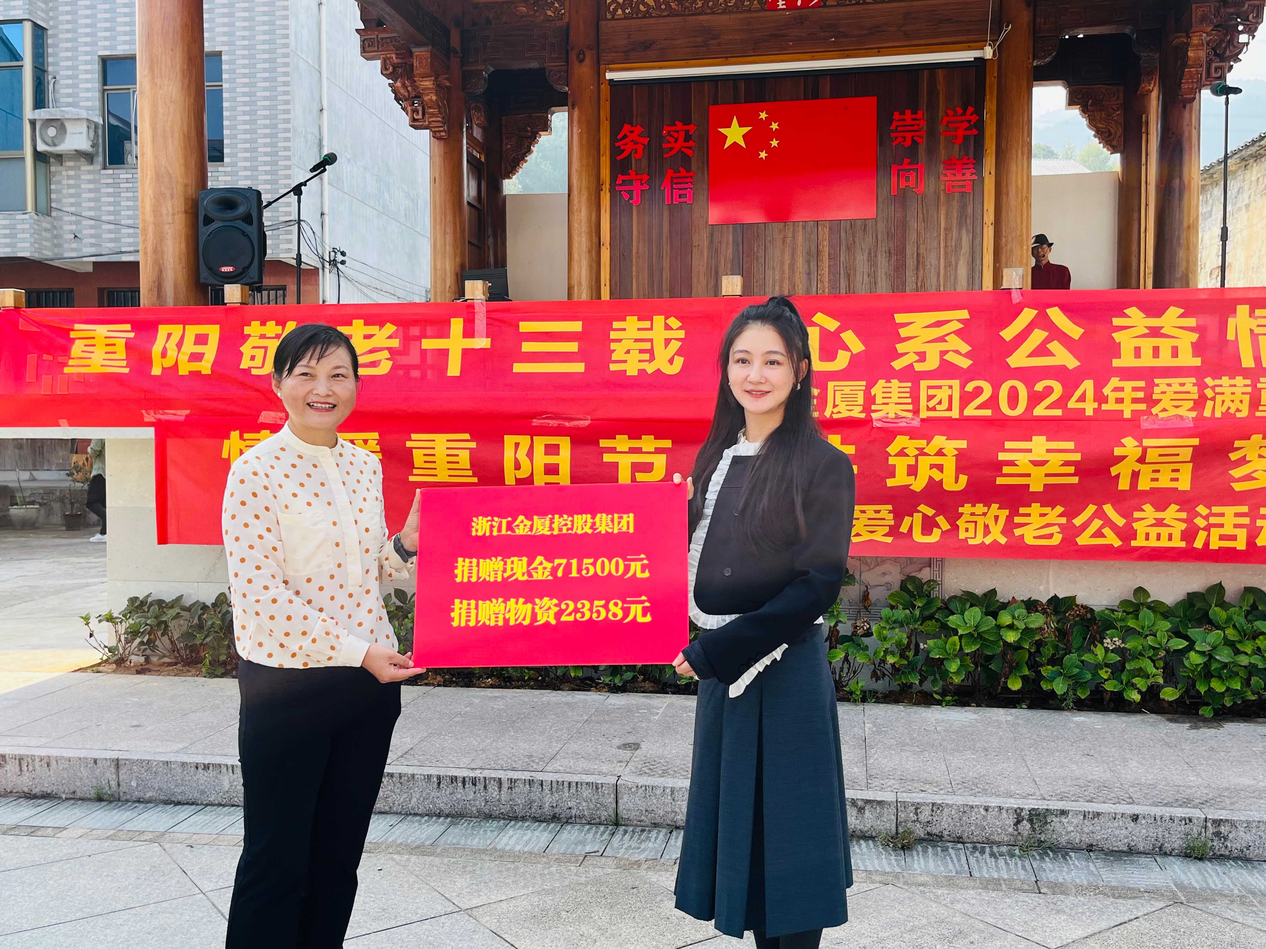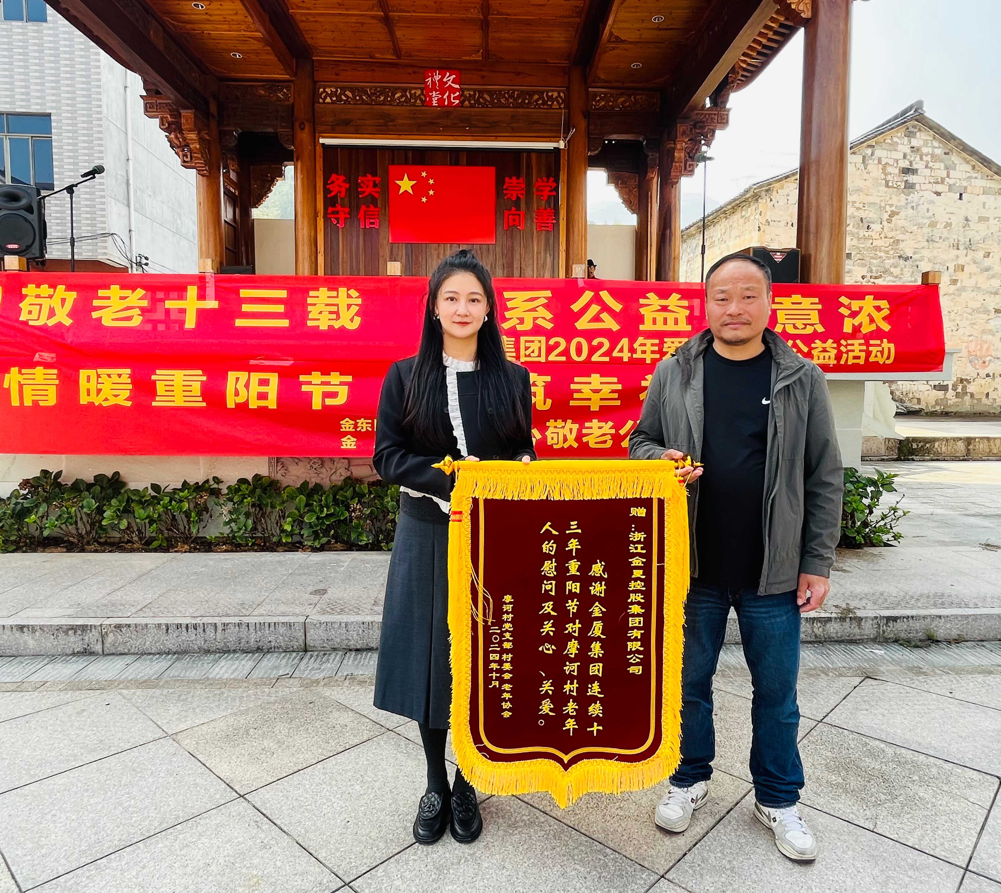 在2024年重陽節(jié)即將來臨之際,為進一步弘揚中華民族尊老敬老的傳統(tǒng)美德,展現(xiàn)企業(yè)的社會責(zé)任感, 10月10日上午,金華市政協(xié)委員、金廈集團董事長蔣晨虹率集團高管及各條線負責(zé)人一行再次前往金東區(qū)嶺下鎮(zhèn)摩訶村,開展“情暖重陽節(jié),共筑幸福夢”重陽慰問活動,為村里老年人和困難家庭送上慰問金、慰問品,并通過豐富多彩的活動為大家送上節(jié)日的美好祝福。這也是金廈集團連續(xù)第13年開展重陽節(jié)助老公益活動。