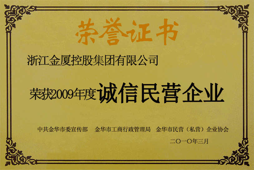 集團(tuán)先后被授予“浙江省文明單位”“浙江省著名商標(biāo)”“浙江省建設(shè)業(yè)重質(zhì)量重安全雙優(yōu)示范單位” “金華市先進(jìn)建筑業(yè)企業(yè)”“金華市知名商號(hào)”“金東區(qū)模范職工之家”等榮譽(yù)稱號(hào)。在2023年度,集團(tuán)下屬公司先后榮獲“金東區(qū)房地產(chǎn)納稅十強(qiáng)”“開發(fā)區(qū)納稅超五千萬元企業(yè)”“ 蘭溪納稅千萬元以上企業(yè)”“義烏市工業(yè)企業(yè)五十強(qiáng)”“永康市納稅優(yōu)勝企業(yè)”“金東區(qū)稅收超五百萬元工業(yè)企業(yè)”“義烏廿三里街道十大突出貢獻(xiàn)企業(yè)”等榮譽(yù)。